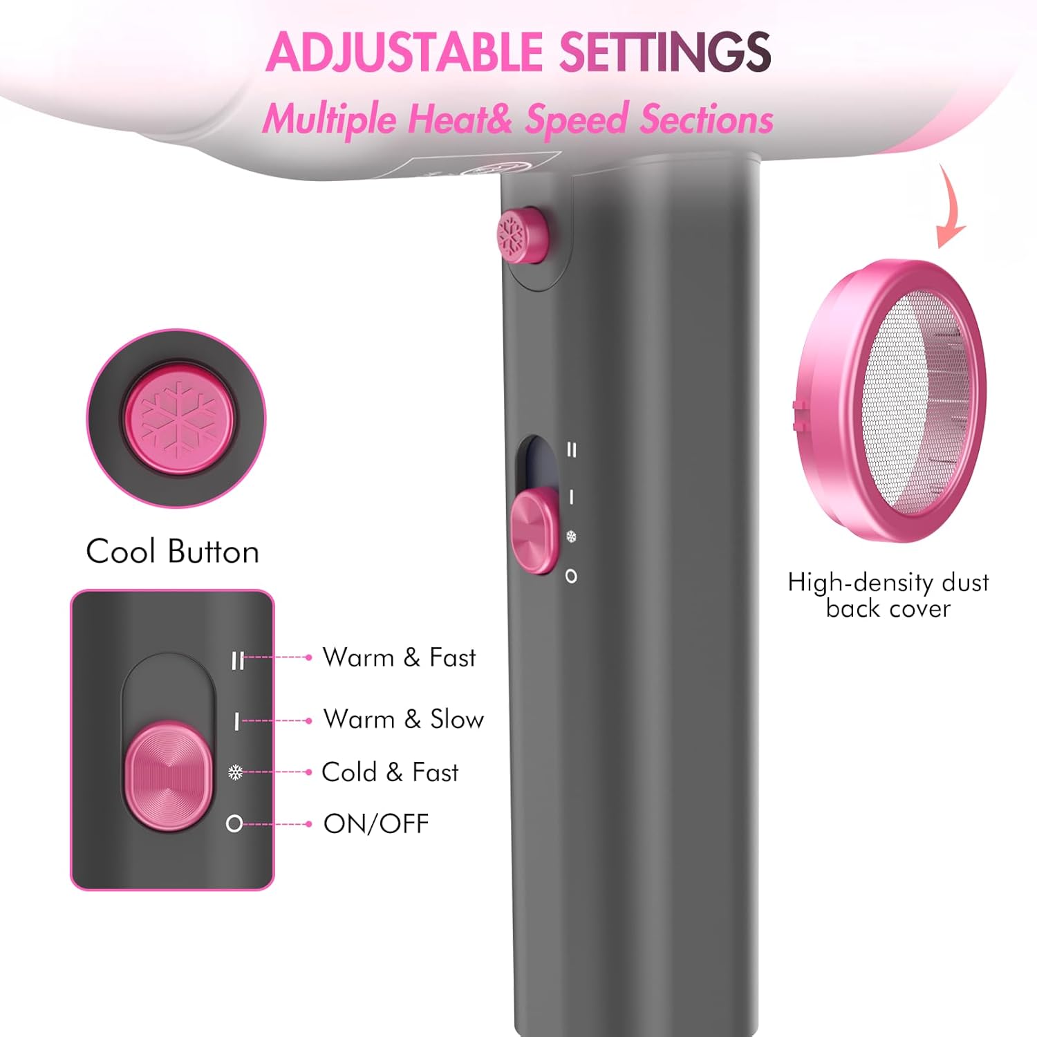 Hair Dryer, 1875 Watts Fast Drying Blow Dryer with Diffuser and Concentrator, Compact Lightweight Hair Dryer for Women and Men - PHamily Hair Care